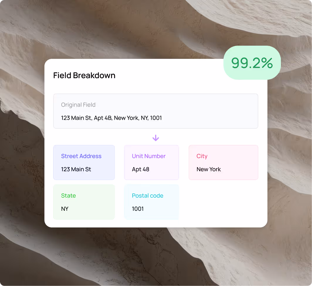 Every field gets standardized for format consistency and accuracy. Know which fields were transformed and verify changes meet your data quality standards.