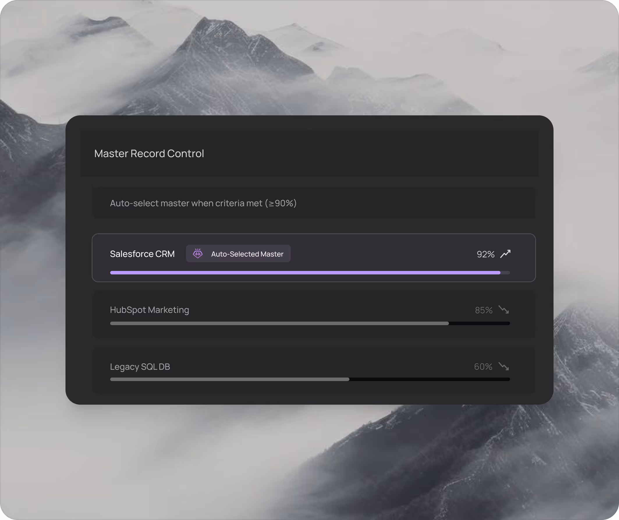 Every golden record gets scored for field completeness after merge. Know which records are fully enriched and which still have gaps needing attention.