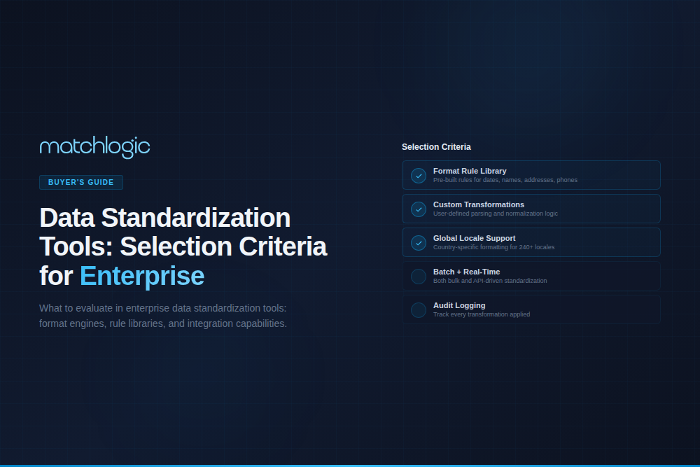 This is not a hypothetical improvement. Every enterprise data matching project that skips standardization pays the cost in false negatives (missed matches), false positives (incorrect matches caused by noise), and hours of manual review. Standardization is not a separate project from matching; it is the first phase of every matching pipeline. [INTERNAL LINK: /resources/address-standardization, address standardization]
